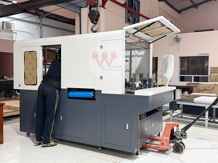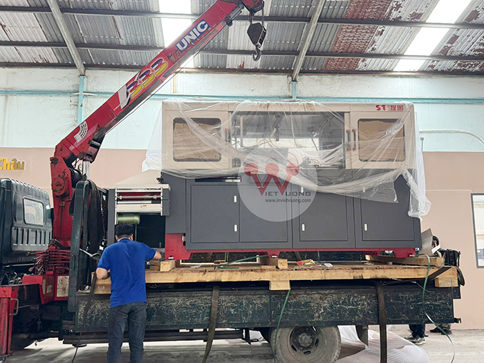 Sau thời gian dài chờ đợi, chiếc máy hiện đại đã chính thức có mặt tại xưởng Việt Vương! Hiện tại, đội ngũ kỹ thuật đang gấp rút lắp ráp và chạy thử những bước đầu tiên. Không khí trong xưởng vô cùng sôi động, ai nấy đều tràn đầy kỳ vọng cho một chặng đường phát triển mới.